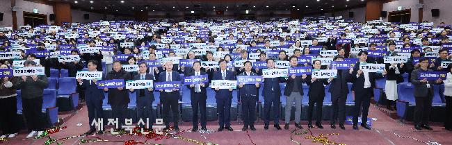 김관영 전북자치도지사와 전춘성 진안군수, 진안을 지역구로 둔 안호영 국회의원과 전용태 도의원 등 500여 명이 지난 26일 진안군 문예체육회관에 모여 양수발전소 유치 의지를 다짐하고 그 성공을 기원하는 퍼포먼스를 펼...
